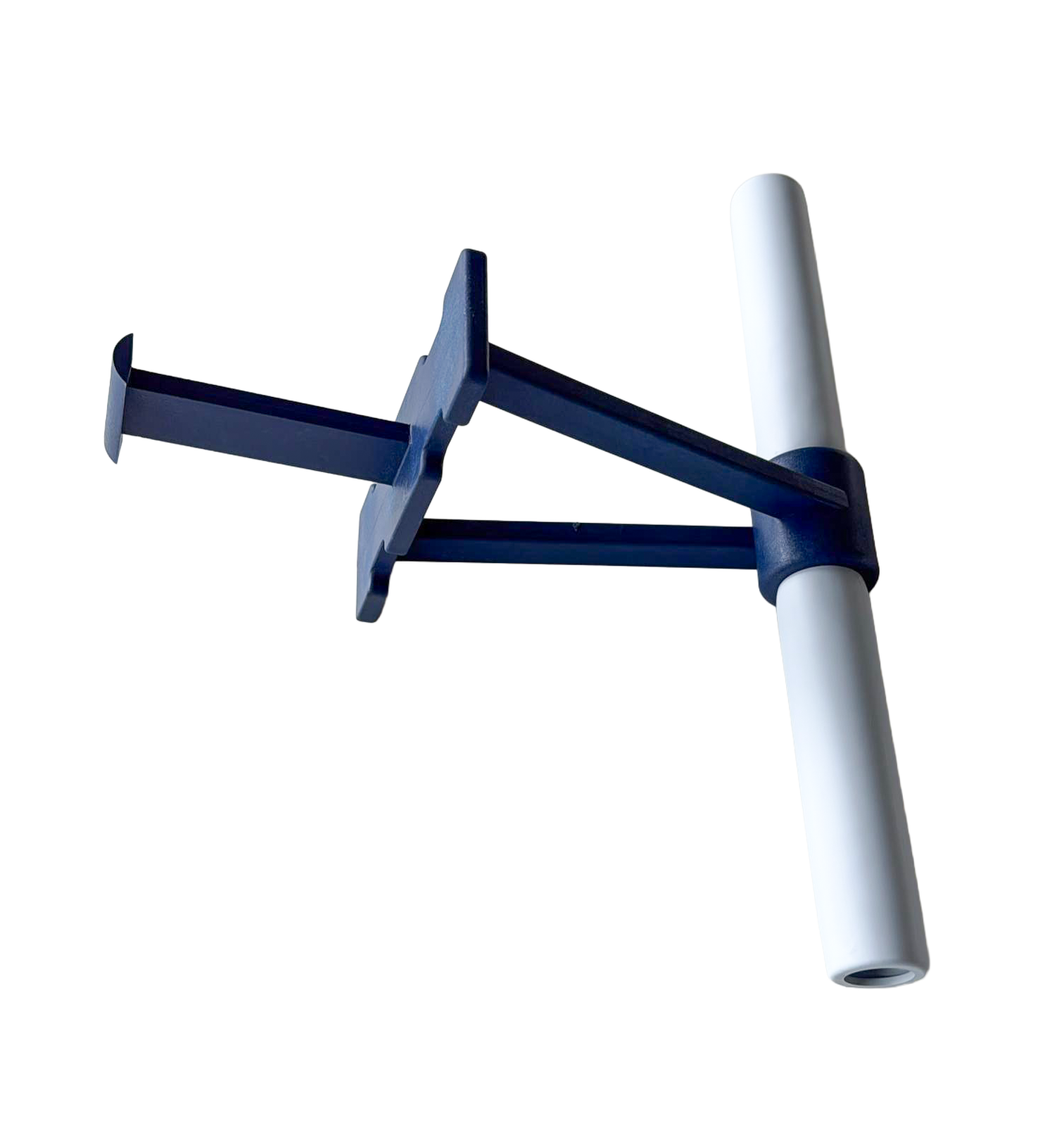 Druk de vloervezel volledig in de ERA pers. Druk vervolgens de uitpershulp met de smalle zijde naar beneden tussen de twee vezeleinden, zodat de in het midden geplaatste persplaat van bovenaf op de vloervezel drukt. De zijdelingse uitsteeksels aan het uiteinde van de uitpershulp zorgen ervoor dat de vloervezel na het persen weer uit de pers wordt getrokken.